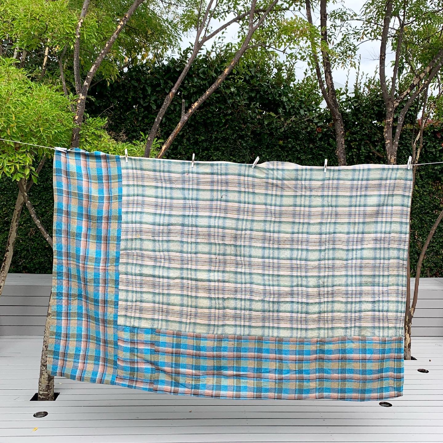 This Kantha (which means ‘old cloth’) is a vintage piece that has been carefully chosen. No two are alike and this upcycled piece is fully reversible and will hold up well to daily use. Because it is vintage there may be small imperfections, irregularities and marks. It is 100% cotton and can be machine-washed with cold water, separate, on the delicate cycle or it can be hand-washed. Line dry. Do not bleach. It can also be dry-cleaned.