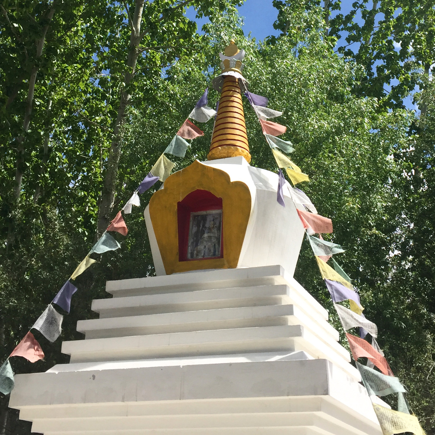The vibrant flags are always arranged in colour order from left to right: blue, white, red, green, yellow. Blue represents the sky, white represents the air, red symbolizes fire, green symbolizes water, and yellow symbolizes earth. All five colours together signify balance. Over time the colours will fade indicating the prayers have been successfully carried by the wind.